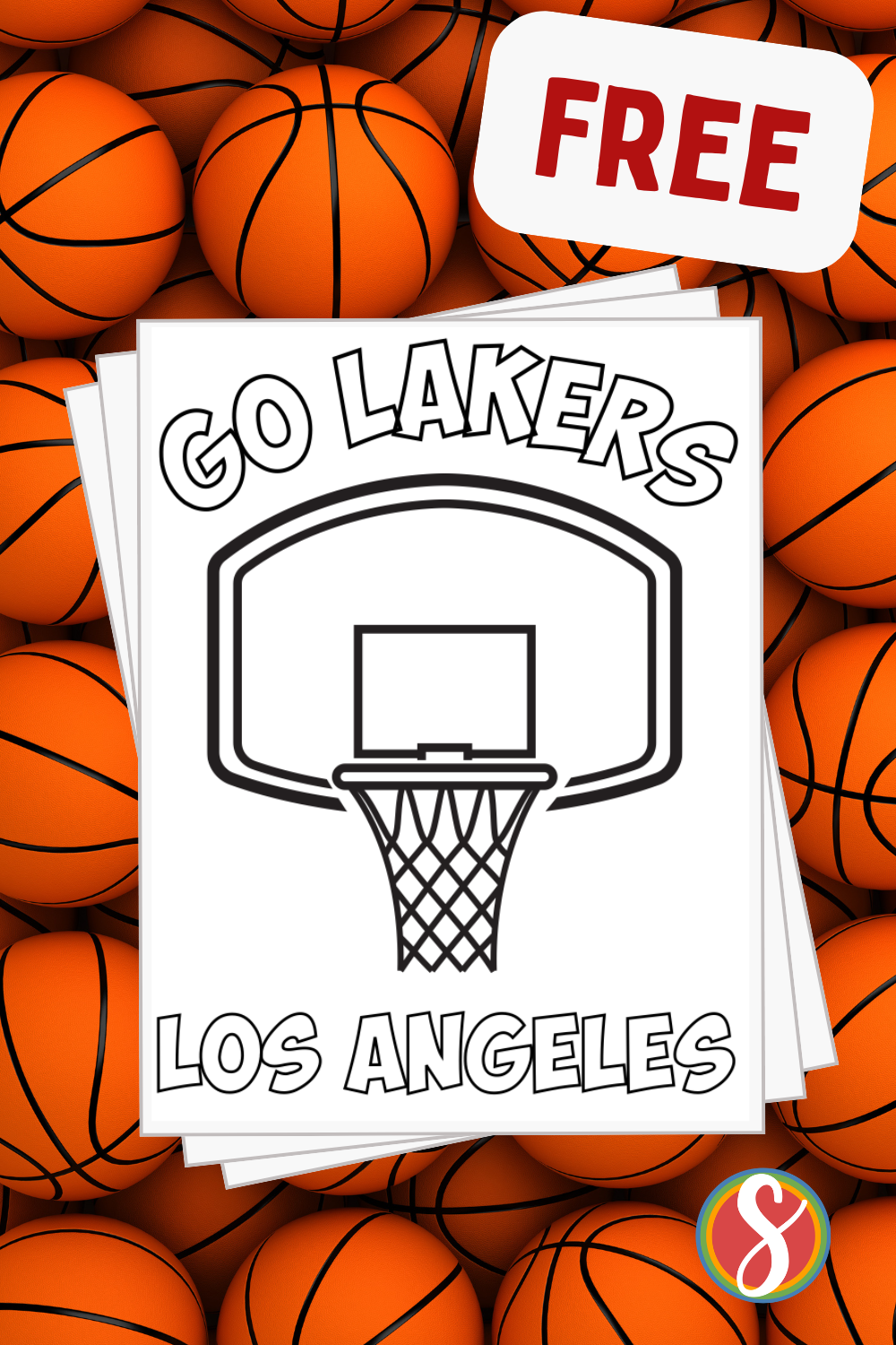 Another super simple page with a ball that just swished through the hoop and “Go Lakers” letters to color.