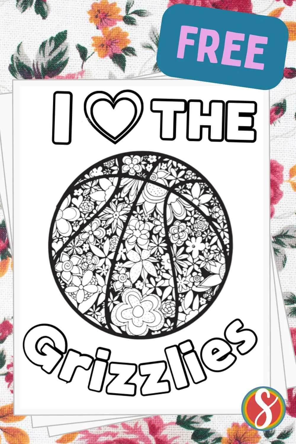 Another super simple page with a ball that just swished through the hoop and “Go Grizzles” letters to color.