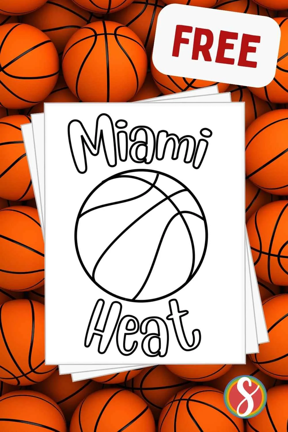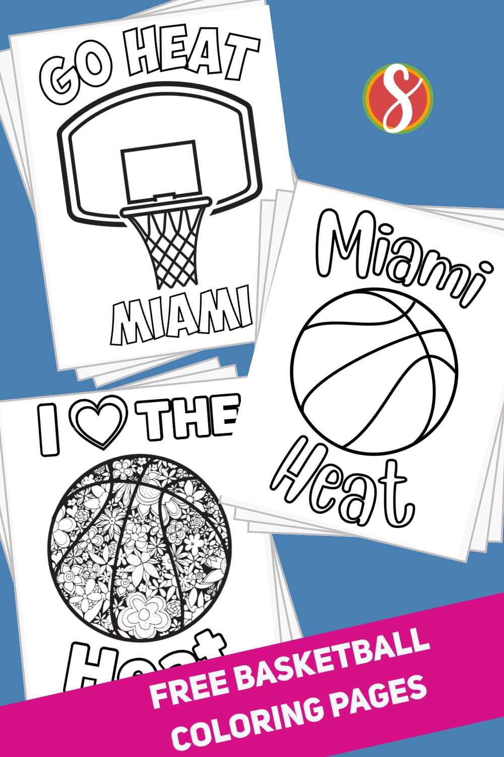 Another super simple page with a ball that just swished through the hoop and “Go Heat” letters to color.