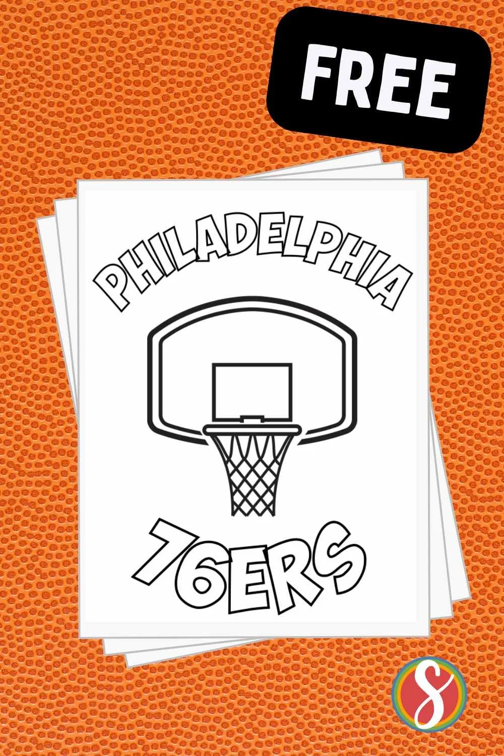 Another super simple page with a basketball hoop and “Go 76ers” letters to color.