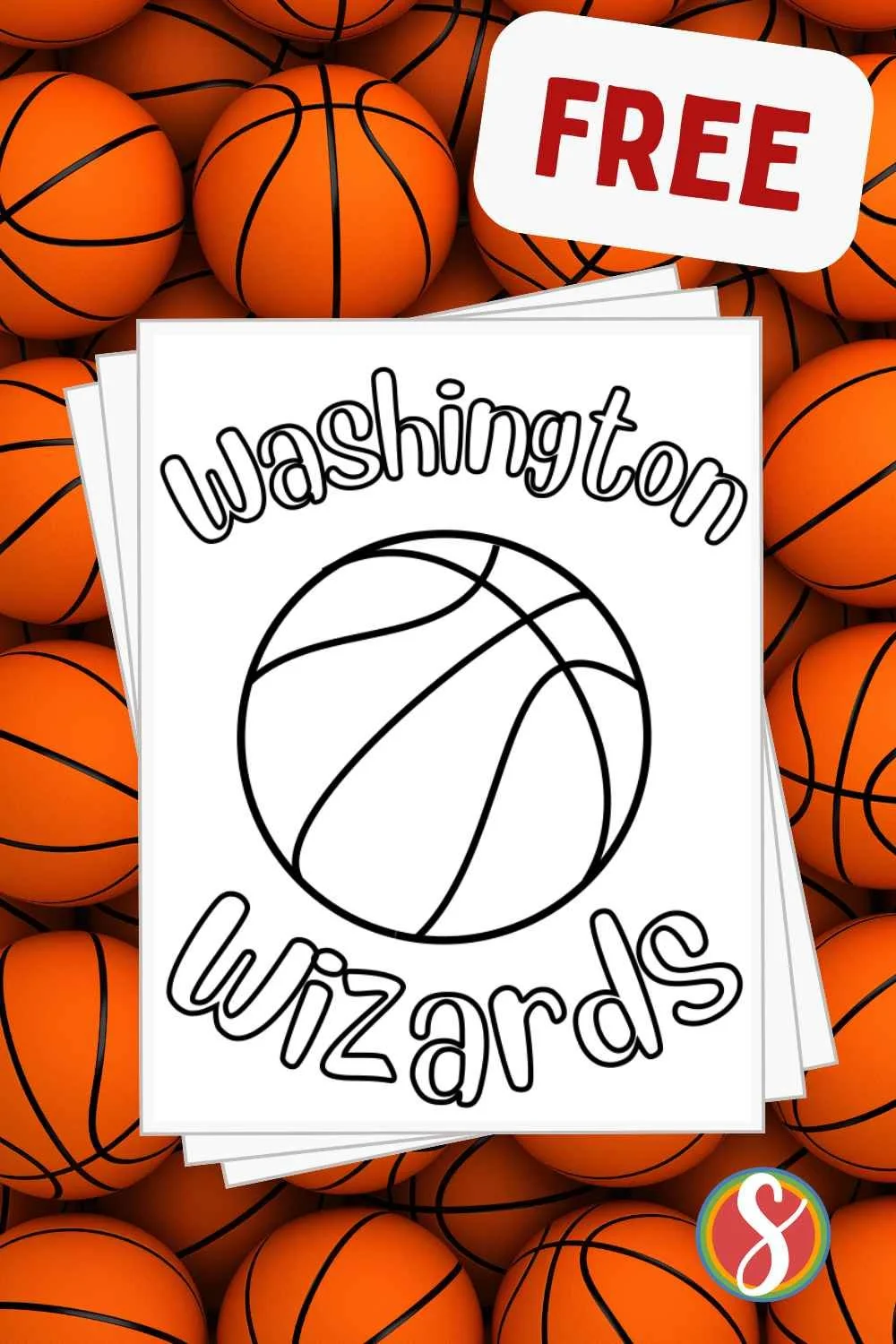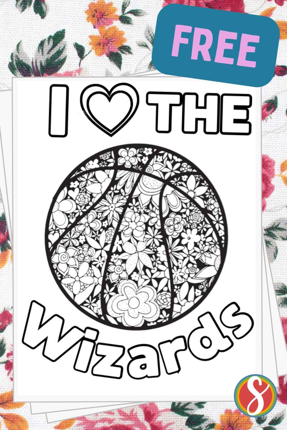 Another super simple page with a basketball hoop and “Go Wizards” letters to color.