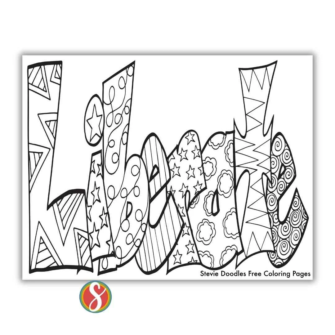 Print this free LIBERATE color page from Stevie Doodles.