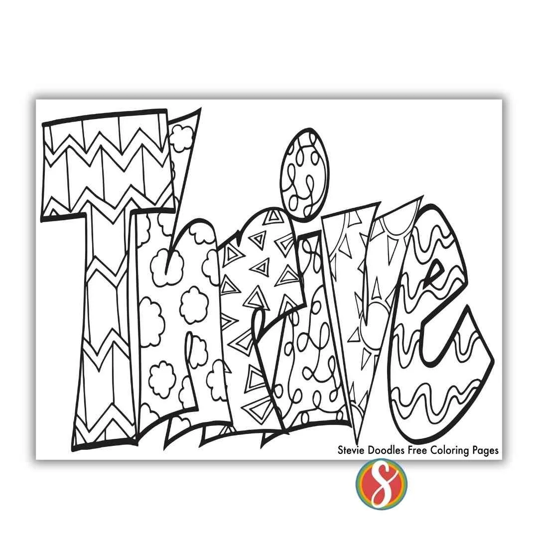 Print this free THRIVE color page from Stevie Doodles.