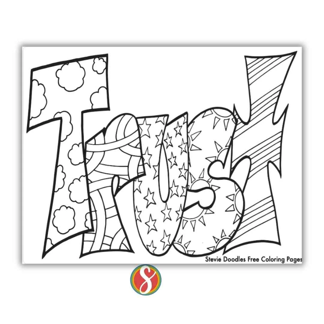 Print this free TRUST color page from Stevie Doodles.